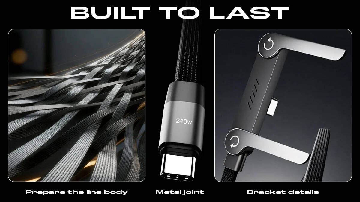 ๐ฅ๐ฑ240W Braided Fast Charge Cable With Built-in Phone Stand