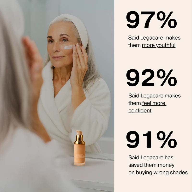 Developed with mature skin in mind, our Color Adapting Foundation has been thoroughly tested and approved by leading dermatologists who understand the unique needs of women's changing skin. The formula combines powerful anti-aging ingredients with our color-matching technology, ensuring both safety and the flawless coverage that your skin deserves.