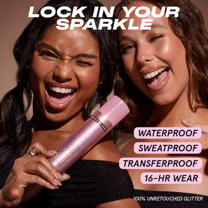 Our Waterproof Glitter Setting Spray keeps your sparkle locked for up to 16 hours! Transferproof and unstoppable!