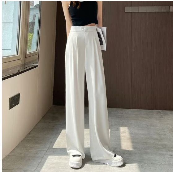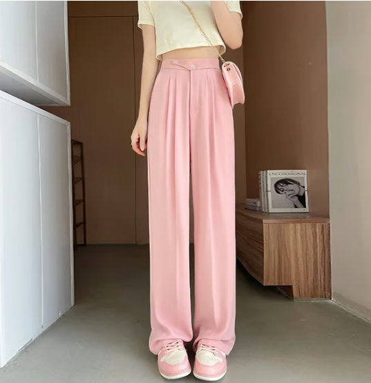 The pleated design well conceals fat on the leg, making your leg look slim and slender. Wide straight leg, lost fit Suitable for all women.