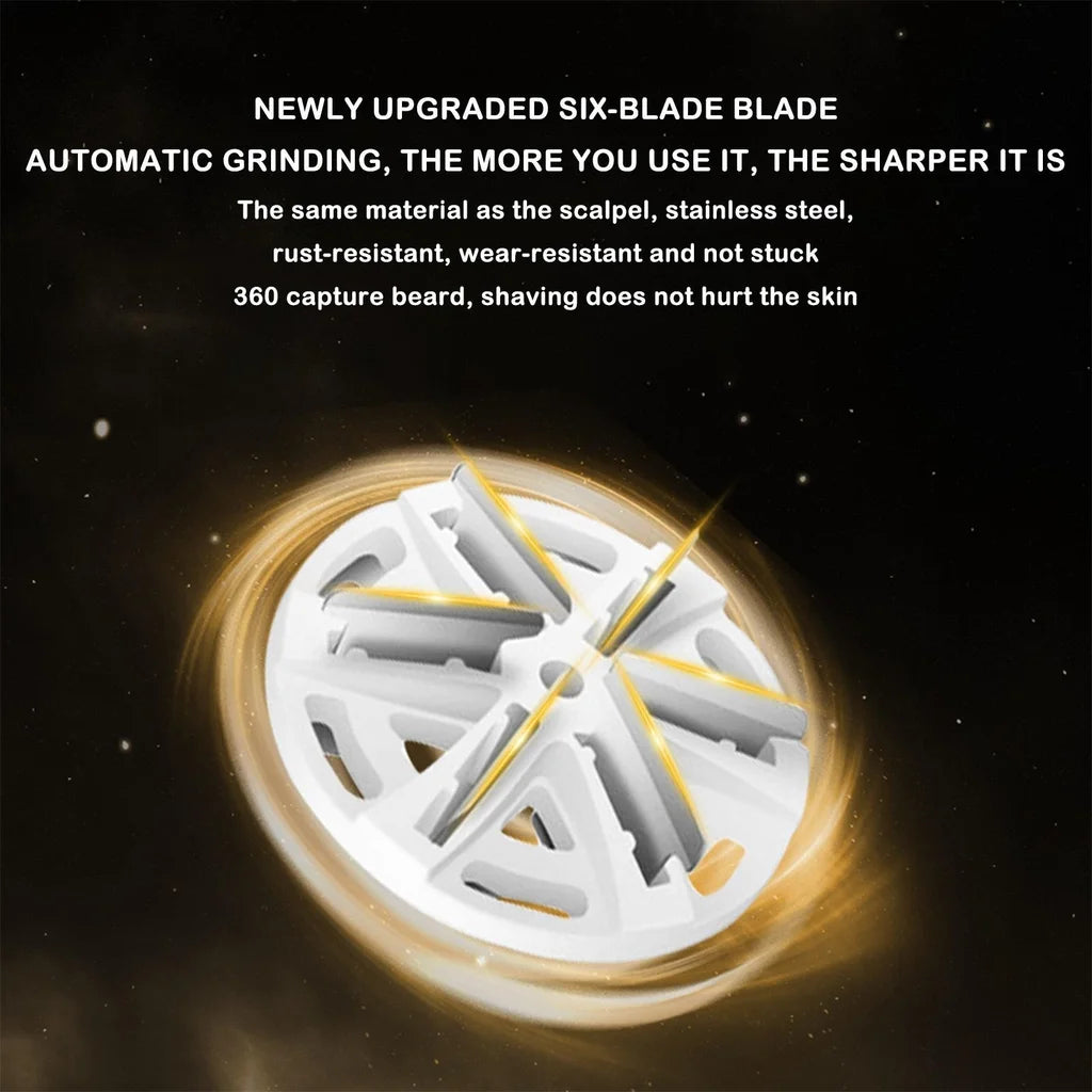 6 blade sharp stainless steel turbo whirl blade, specializing in hard beard, 0.1mm thin stainless steel foil, double Honeycomb knife net, increase shaving volume, floating arc surface smooth and stick to the skin, remove hair from the root.