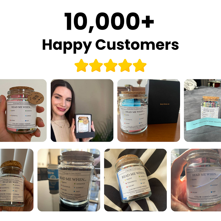 Each verse in The Guidance Jar is thoughtfully selected to provide comfort from our Creator, offering wisdom and emotional support to help you understand and deal with any circumstances you are facing. Whether you're happy, anxious, thankful, lonely, angry, or sad, these verses offer guidance and solace.