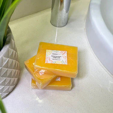 Our lemon turmeric & kojic acid brightening soappromotes brighter, more even-toned, healthier skin with its unique blend of active components.