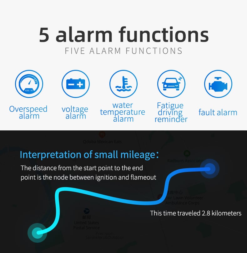 Multi-function: Heads up display can display vehicle speed, water temperature, voltage, one-way mileage. With alarm function, overspeed alarm, water temperature alarm, voltage alarm, fatigue driving reminder, fault alarm. HUD has an adaptive light sensor function, with clear backlight during the day and soft and glare- at night.
