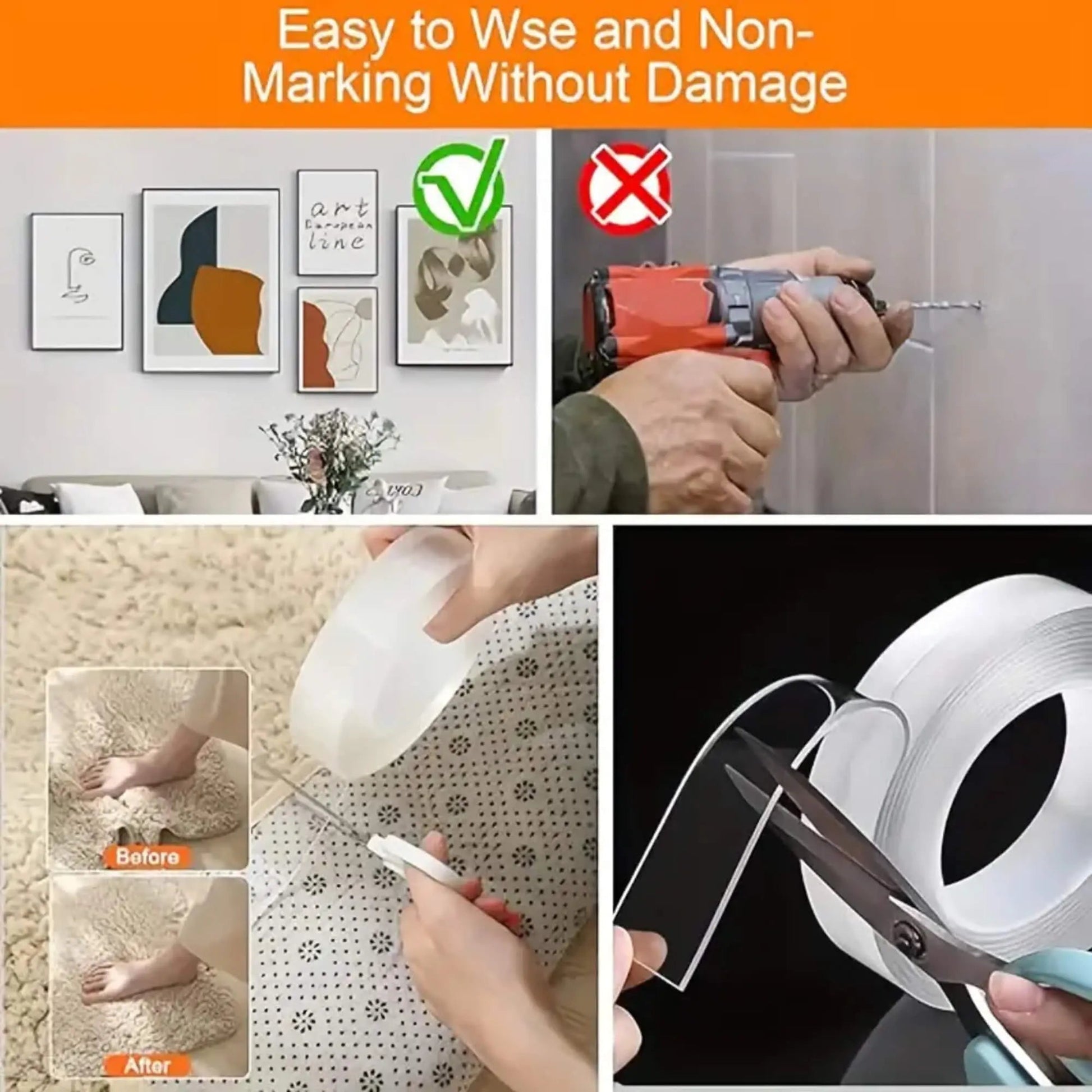 Revolutionize your home and office projects with this 1-roll pack of double sided tape heavy duty. delivering a total of 10 feet of premium. ultra-sticky nano gel tape. Designed for convenience and strength,perfect for every task from wall mounting to rug securing.