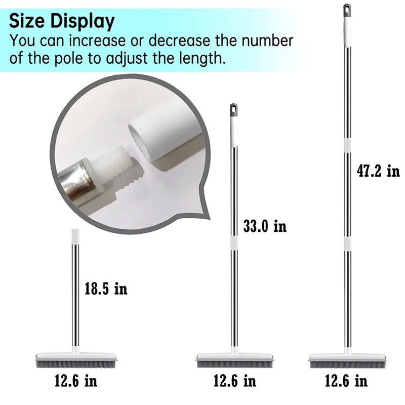 Adjustable:31.5 inches to 54 inches adjustable length suit for people of different heights to use.Long enough for tall adults to sweep with out bending down.It can also be shortened for ease of kids'use.