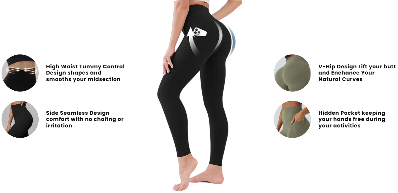 Our leggings provide exceptional tummy control, helping to smooth and shape your midsection while offering a secure fit.