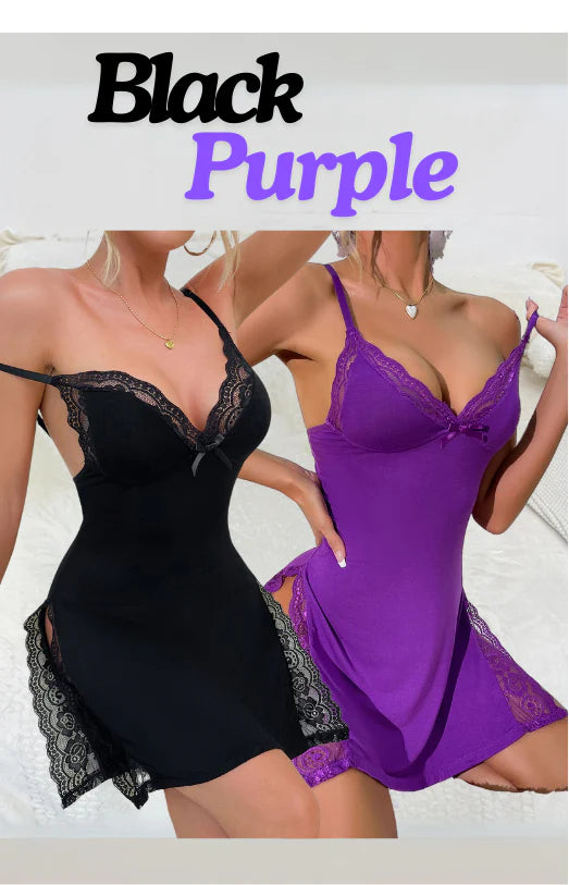 Last week 49% OFF🔥Lace Trim Slit Bowknot Decor Sleep Dress