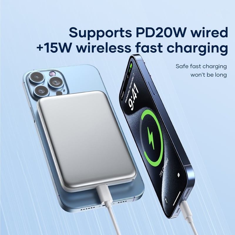 With a 5000mAh high-capacity battery, it can fully charge most iPhones once and provide an extra top-up when needed.