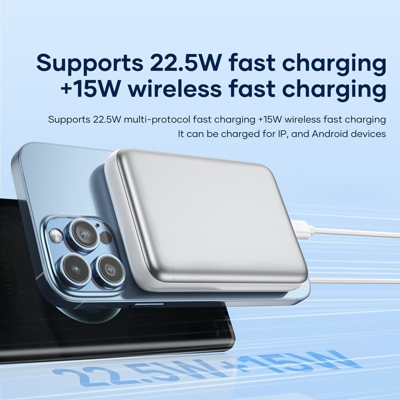 The wireless output provides 15W fast charging, while the USB-C port supports up to 20W PD charging for even faster results.