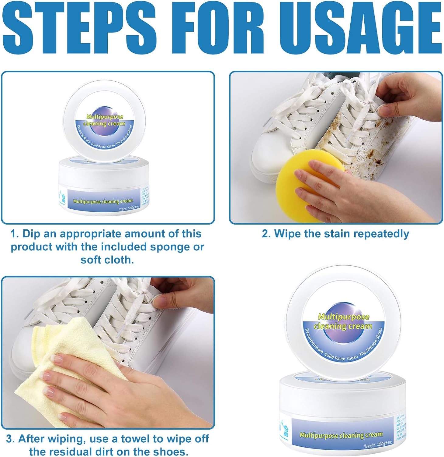 🤩Multi-functional cleaning and stain removal cream can help you easily solve the various worries of shoe cleaning, you can even carry it into your backpack, anytime and anywhere you can make your shoes look new and avoid embarrassment.