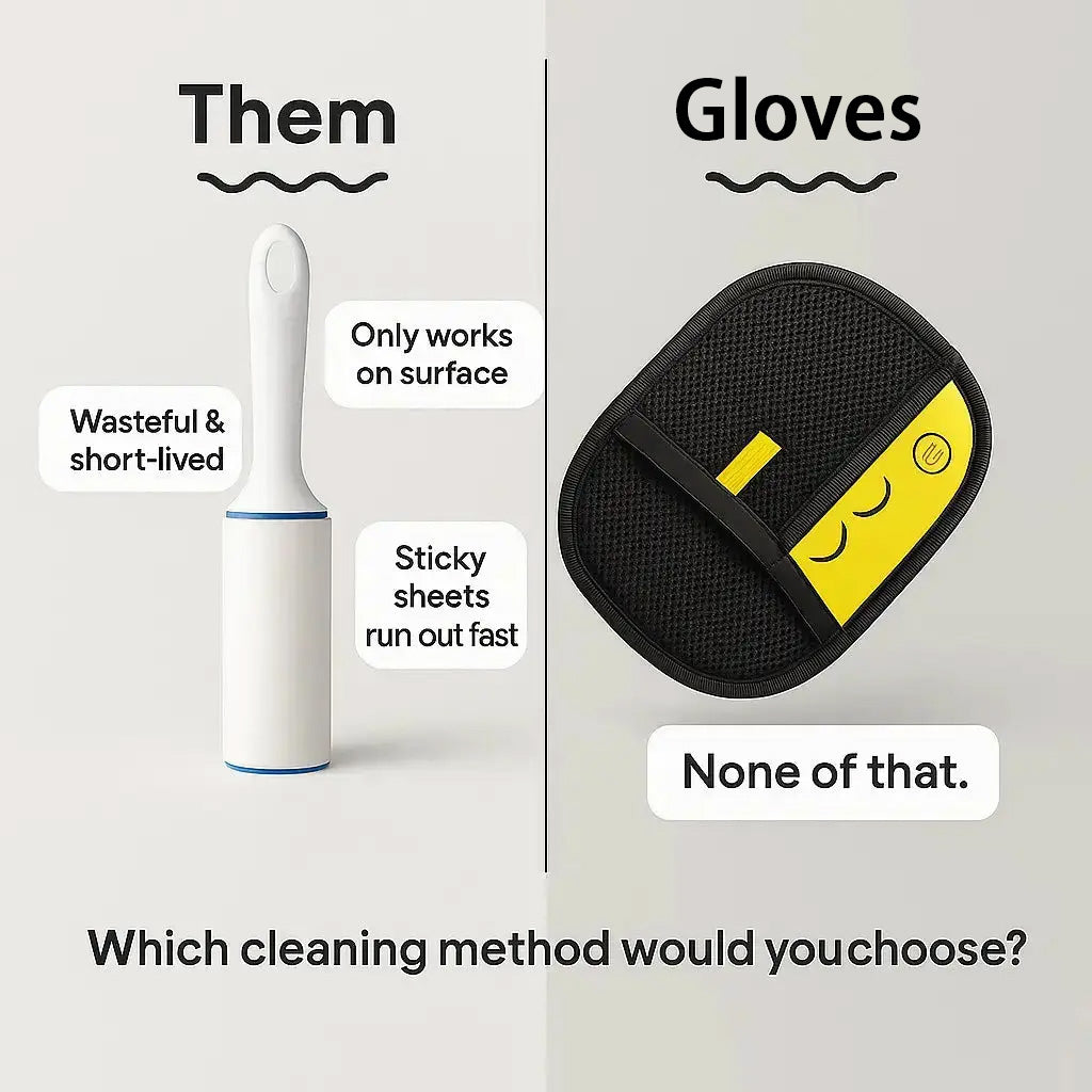 Experience the power of our Electrostatic Gloves and see how quickly they remove pet hair from furniture, clothes, and more—making your home cleaner and more comfortable.