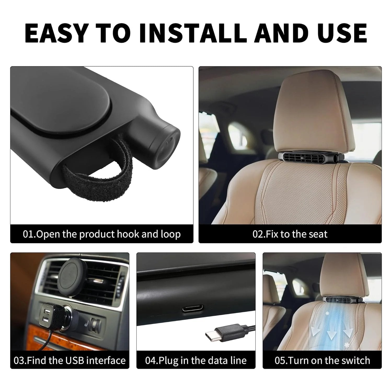 🔌🎐Easily install the car seat fan on the front seat using the adjustable strap attached to the headrest bar for instant relief and relaxation.🔌🎐