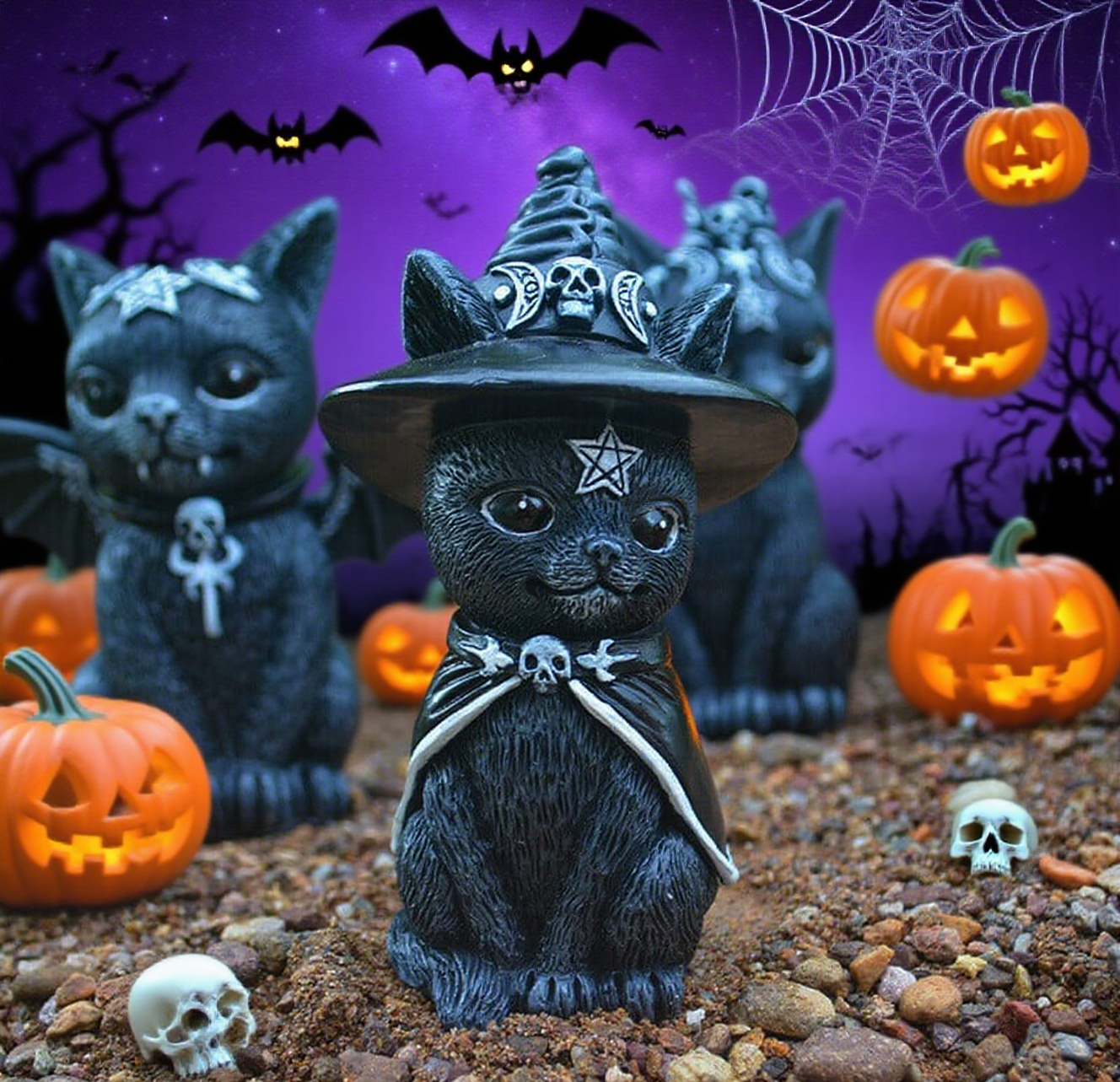 🐱These black cats are the best friends of the god of death. The black cats are decorated with stars and moon patterns, wearing horns, wings, cloaks, and wizard hats, full of mystery.