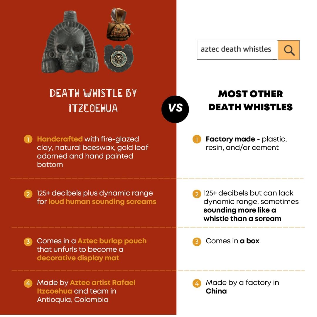 Stonecast clay exterior honors Aztec culture; precision scream chamber ensures powerful sound. 🗿🎯