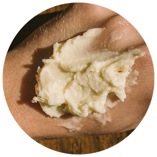 Adeps Bovis (Grass-Fed Tallow), Olea Europaea (Olive) Fruit Oil, Beeswax, Tocopherol, Mel, Essential oils (Lavender, Eucalyptus, Rosemary, Ylang Ylang, Orange, Lemon, Lime), Retinyl Palmitate, Vitamin C